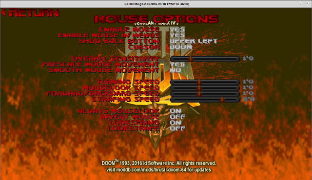 Para iniciá-lo basta fazer isso através do ícone do Brutal Doom 64 em seu menu e configurar o gzdoom .