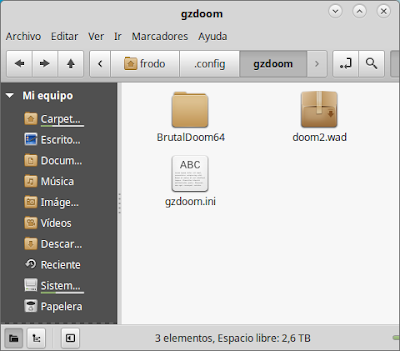 Agora vamos para a pasta /home/username/.config/gzdoom