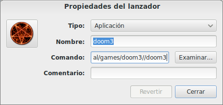 Tipo : Nome do aplicativo : Doom 3 (ou o que você quiser) Comando : doom3 (deve ser exato) Comentário : (coloque o que quiser) Escolha um ícone e " OK "