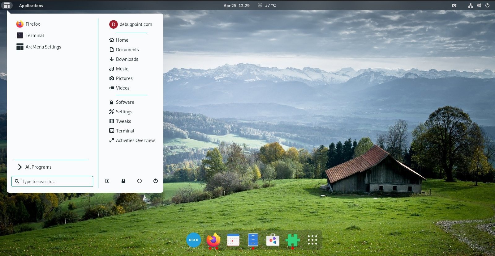 O popular Menu Arc funciona perfeitamente bem com o desktop GNOME 40. Com menu Arc, você ganha um menu super produtivo com temas adicionais, opções e muitos novos ajustes. Esta extensão é recentemente portada para o GNOME 40 e funcionando bem.